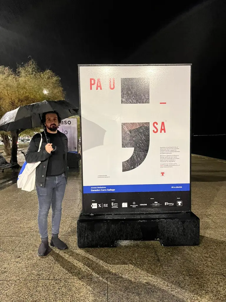 Curro Gallego-Preciados @cureeddo, alumno de 2º de Grado Superior de Diseño y Edición de Publicaciones Impresas y Multimedia del IES La Albericia, ha ganado la edición del concurso Jóvenes Diseñadores, ‘Tipos’, por su pieza ‘Pausa’, un trabajo con «un concepto potente, un diseño equilibrado y atractivo que busca la proactividad del espectador para provocar su reflexión», reconoce el jurado.