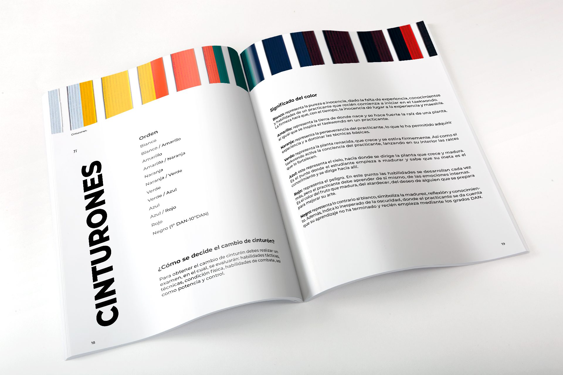Con estas premisas y un exhaustivo estudio previo, tomando referencias incluso internacionales que muchas veces recuerdan a la Bauhaus, Raquel se decidió por una maqueta sencilla, con numerosos blancos y amplios márgenes, pero muy bien estructurada y equilibrada, transmitiendo así los valores que se desprenden de esta disciplina de Arte Marcial. El formato de página es un A5, para abaratar costes, y en él se mantiene contínua una retícula de tres columnas, que ofrecen un amplio abanico de posibilidades compositivas, facilitando el ritmo necesario a la publicación. Una única tipografía de palo seco, Monserrat, en distintos pesos y tamaños, aporta el contraste necesario, sumando al tiempo sencillez y seriedad a la revista.